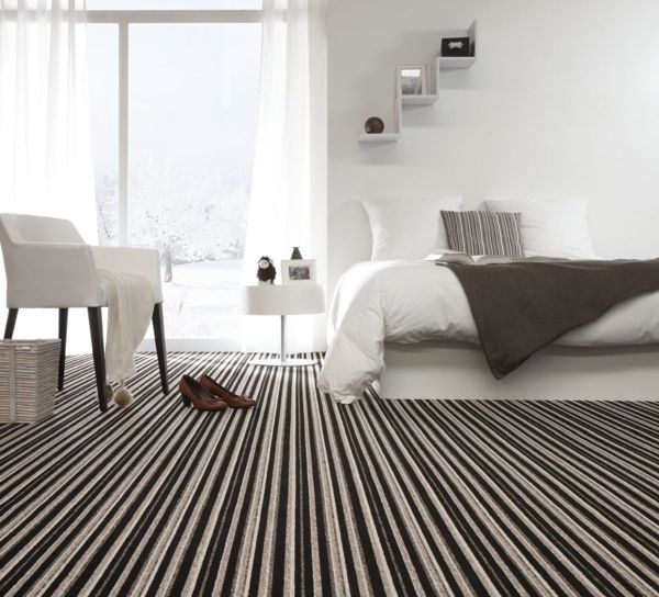 Beż w sypialniach króluje niezmiennie od kilku sezonów. Jego łagodna, ciepła stylistyka sprawia, że wnętrze staje się niezwykle przytulne. Doskonale wygląda zarówno we wnętrzach nowoczesnych, klasycznych, jak i prowansalskich. Jeżeli chcemy, aby nasza wykładzina była jeszcze bardziej na czasie, wybierzmy taką, której tekstura została zróżnicowana dzięki różnej długości włosa.